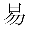 《唐韻》羊益切《集韻》《韻會》《正韻》夷益切,𠀤音亦。《說文》蜥易,蝘蜓,守宮也。象形。祕書說:日月爲易,象隂陽也。《易·繫辭》《易》者,象也。《疏》《易》卦者,爲萬物之形象。《又》生生之謂易。《註》隂陽轉易,以成化生。《疏》隂陽變轉。《周禮·春官·大卜》掌三《易》之灋:一曰《連山》,二曰《歸藏》,三曰《周易》。《註》易者,揲蓍變易之數,可占者也。《孔穎達·周易正義》夫易者,變化之總名,改換之殊稱。《朱子·周易本義》《易》,書名也。其卦本伏羲所畫,有交易、變易之義,故謂之《易》。