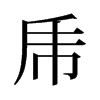 又與琥通。《吳志·裴松之註》虞翻曰:僕聞虎魄不取腐芥。《六書正譌》象虎踞而回顧之形。《篇海》儿rén,古人字,虎足象人,故从人。从几,誤。《干祿字書》通作𧆞。