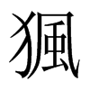 《廣韻》方戎切《集韻》方馮切,𠀤音風。《玉篇》猦𤝕,獸名。有尾,小打卽死,因風更生。《廣韻》猦母,狀如猿,逢人則叩頭,小打便死,得風還活。出異物志。《正字通》猦貍,狀如猿而小,目赤,尾短如無尾,身無毛,自鼻至尾一道有靑毛,廣寸許,見人若慙,屈頸叩頭,擊之卽死,以口向風,須臾復活。本作風。《酉陽雜俎》一名狤𤟎。