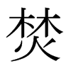焚【巳集中】【火部】 康熙筆画:12画,部外筆画:8画