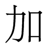 《唐韻》古牙切《集韻》《韻會》《正韻》居牙切,𠀤音家。《說文》語相增加也。从力口。《徐曰》會意。《爾雅·釋詁》重也。《註》重𤴁也。《玉篇》益也。《論語》又何加焉。