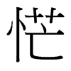 《廣韻》莫郞切《集韻》《韻會》《正韻》謨郞切,𠀤音茫。怖也。《列子·楊朱篇》恾然無以應。