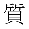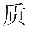《唐韻》之日切《集韻》《韻會》《正韻》職日切,𠀤音桎。《易·繫辭》原始要終,以爲質也。《註》質,體也。