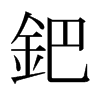 《唐韻》伯加切《韻會》《正韻》邦加切,𠀤音巴。《說文》兵車也。从金巴聲。《玉篇》𠋫車也。《司馬法》晨夜內鈀車。