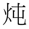 炖【巳集中】【火部】 康熙筆画:8画,部外筆画:4画