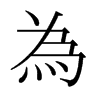 又《廣韻》《集韻》《韻會》𠀤于僞切,音䧦。《廣韻》助也。《增韻》所以也,緣也,被也,護也,與也。《書·咸有一德》臣爲上爲德,爲下爲民。《釋文》爲上爲下之爲,于僞反。徐云:四爲字皆于僞反。