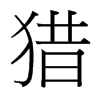 又《集韻》《韻會》七約切《正韻》七雀切,𠀤音鵲。《彙雅》宋良犬。一名猎猎。《集韻》本作㹱。或作獡。詳㹱字註。(獵)《唐韻》良涉切《集韻》《韻會》《正韻》力涉切,𠀤音鬣。《說文》放獵,逐禽也。《廣韻》取獸也。白虎通曰:四時之田,總名爲獵,爲田除害也。尸子曰:虙羲氏之世,天下多獸,故敎人以獵也。《爾雅·釋言》獵,虐也。《疏》獵謂從禽也。必暴害於物,故云。《爾雅·釋天》春獵爲蒐,夏獵爲苗,秋獵爲獮,冬獵爲狩。《詩·魏風》不狩不獵。《禮·王制》豺祭獸,然後田獵。《蔡邕·月令章句》獵者,捷取之名。《正字通》獵以供俎豆,習兵戎,皆國家重事也。