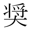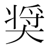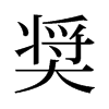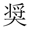 《廣韻》卽兩切,音槳。《玉篇》助也,成也,欲也,譽也,嗾犬厲之也。今作㢡。《廣韻》說文本作𤟌。《集韻》从大作奬。詳大部奬字註。