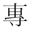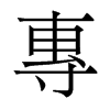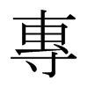 〔古文〕𠧡𠧢𡵏《唐韻》職緣切《集韻》朱遄切《正韻》朱緣切,𠀤音磚。《說文》六寸簿也。从寸叀聲。《徐曰》簿,文簿也。《廣韻》壹也,誠也。《增韻》純篤也。《易·繫辭》夫乾,其靜也專。《孟子》不專心致志,則不得也。