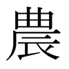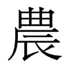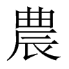 耕也。从䢅囟聲。𨑋,籒文䢉从林。𦦥,古文䢉。辳,亦古文䢉。奴冬切〖注〗徐鍇曰:“當从凶乃得聲。” 〖注〗𨑇、𣊤、𨑆、𦦤、莀,古文農。文二重三