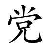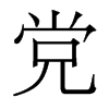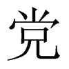 (1) (形声。从黑,尚声。“党”、“黨”在古代是两个字,现在“党”是“黨”的简化字。简化字“党”,从儿(人,尚声)本义:晦暗不明。“党”指集团时,在古代一般只用于贬义,与现代汉语不同)