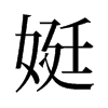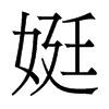 又《廣韻》《正韻》徒鼎切《集韻》《韻會》待鼎切,𠀤音挺。《說文》女出病也。一曰長好貌。或曰慢也。