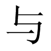 又《集韻》倚亥切,音欸。与也。◎按說文与訓賜予也,一勺爲与。與訓黨與也。今俗與字通作与。