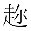 趂【酉集中】【走部】 康熙筆画:12画,部外筆画:5画