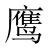 《廣韻》《集韻》《韻會》𠀤於陵切,音膺。《玉篇》鷙鳥。李時珍曰:鷹以膺擊,故謂之鷹。陸佃云:一歲曰黃鷹,二歲曰鴘鷹,鴘次赤也。三歲曰鶬鷹,今通謂之角鷹,頂有毛角微起。一曰題肩,一曰征鳥,一曰爽鳩。《左傳·昭十七年》爽鳩氏。《註》鷹也,一作鶆鳩。《爾雅·釋鳥》鷹鶆鳩。