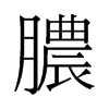 《廣韻》《集韻》《韻會》𠀤奴冬切,音農。《說文》腫血也。《玉篇》癰疽潰也。《史記·倉公傳》後八日嘔膿。