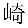 (3) 又如:崎崟(山峰高低不平的地方);崎岭(形容山路险阻不平)