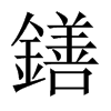 (2) 同“钐”。一种长把大镰刀 。如:鐥子;鐥刀