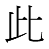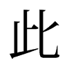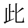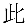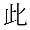 《唐韻》《正韻》雌氏切《集韻》《韻會》淺氏切,𠀤音佌。《說文》止也。从止从匕。匕,相比次也。《徐曰》匕,近也。近在此也。《爾雅·釋詁疏》此者,彼之對。《詩·周頌》在彼無惡,在此無斁。《老子·道德經》去彼取此。