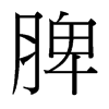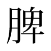 (1) (形声。从月(肉);卑声。本义:脾脏。人和脊椎动物的内脏之一,是贮血和产淋巴与抗体的器官,有调节新陈代谢的作用。中医称“五脏”之一)