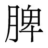 《唐韻》符支切《集韻》頻彌切《韻會》頻脂切《正韻》蒲麋切,𠀤音陴。《說文》土藏也。《徐曰》脾主信藏志,信生於土。《白虎通》脾之爲言裨也。《韻會》文子曰:脾爲風。《淮南子·精神訓》脾爲雷。《釋名》脾,裨也。在胃下。脾助胃氣,主化穀也。《禮·月令》孟春之月,祭先脾。