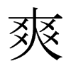 明也。从㸚从大。𤕤,篆文爽。疏兩切〖注〗徐鍇曰:“大,其中隙縫光也。” 文三重一