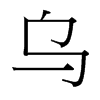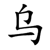 〔古文〕𤚶於𥾪《唐韻》哀都切《集韻》《正韻》汪胡切,𠀤音污。《說文》孝鳥也。象形。《埤雅》林罕以爲全象鳥形,但不注其目睛。烏體全黑,遠而不分別其睛也。《詩·邶風》莫黑匪烏。《小爾雅》純黑而反哺者謂之烏。
