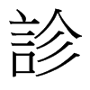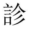 《玉篇》《唐韻》之忍切《廣韻》章忍切《集韻》《韻會》《正韻》止忍切,𠀤音軫。《說文》視也。《玉篇》驗也。《後漢·王喬傳》詔上方診視。《註》診亦視也。《莊子·人閒世》匠石覺而診其夢。《註》占驗也。