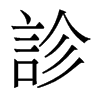 (診)視也。倉公傳診脈、視脈也。從言者、醫家先問而後切也。从言。㐱聲。直刃切。又之刃切。十二部。