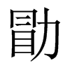 勖【子集下】【力部】 康熙筆画:11画,部外筆画:9画