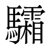 《廣韻》色莊切《集韻》《韻會》《正韻》師莊切,𠀤音霜。與騻同。《晉書·郭璞傳》昆吾挺鋒,驌驦軒髦。《註》驦當爲騻。