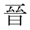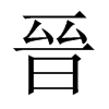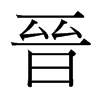 《唐韻》《集韻》《韻會》𠀤卽刃切。《說文》作㬜,進也,日出萬物進也。《類篇》隸省作晉。《易·晉卦》晉,進也。《疏》以今釋古,古之晉字,卽以進長爲義。《又》明出地上晉。