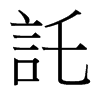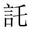 《唐韻》《正韻》他各切《集韻》《韻會》闥各切,𠀤音拓。《說文》寄也。《揚子·方言》凡寄爲託。《玉篇》憑依也。《增韻》委也,信任也。《穀梁傳·定元年》夫請者,非可詒託而往也。《范註》詒託,猶假寄。《禮·檀弓》久矣,予之不託於音也。《鄭註》寄也。《前漢·賈山傳》聚廬而託處。《唐書·李勣傳》勣旣忠力,帝謂可託大事。《說苑·善說篇》上士可以託色,中士可以託辭,下士可以託財。