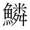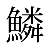 《廣韻》力珍切《集韻》《韻會》《正韻》離珍切,𠀤音鄰。《說文》魚甲也。《玉篇》魚龍之鱗也。《周禮·地官·大司徒》其動物宜鱗物。《註》鱗,龍之屬。《禮·月令》其蟲(鱗。《註》)龍蛇之屬。《淮南子·地形訓》凡鱗者,生於庶魚。
