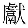 《唐韻》《集韻》《韻會》《正韻》𠀤許建切,音憲。《說文》宗廟犬名羹獻,犬肥者以獻之。从犬,鬳聲。《禮·曲禮》犬曰羹獻。
