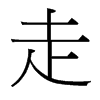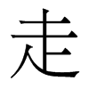 趨也。从夭止。夭止者,屈也。凡走之屬皆从走。子苟切〖注〗徐鍇曰:“走则足屈,故从夭。” 〖注〗㞫,《字彙補》古文走。𣥚,𧺆,《说文》走从夭止。
