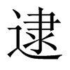 〔古文〕逯《廣韻》《集韻》《韻會》徒戴切《正韻》度耐切,𠀤音代。《說文》及也。《易·繫辭》水火相逮。《註》水火不相入而相逮及。《書·周官》夙夜不逮。