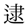 唐逮,及也。从辵隶聲。徒耐切〖注〗臣鉉等曰:或作迨。〖注〗逯(𨓻),古文逮。