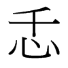 忎【卯集上】【心部】 康熙筆画:7画,部外筆画:3画