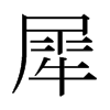 《五音篇海》與犀同。《唐韻》先稽切《集韻》《韻會》《正韻》先齊切,𠀤音西。《說文》南徼外牛,一角在鼻,一角在頂似豕。从牛㞑聲。《爾雅·釋獸》犀,似豕。《註》犀似水牛,豬頭大腹庳脚,脚有三蹄,黑色。三角,一在頂上,一在額上,一在鼻上。鼻上者卽食角也。小而不橢,好食棘。亦有一角者。《疏》交州記曰:犀,出九德,毛如豕,蹄甲,頭似馬。《埤雅》異物志:犀兼五種,肉舌有棘,常食草木棘刺,不啖莖葉。舊說犀之通天者,惡影常飮濁水,佳霧厚露之夜不濡,其裏白星徹端。世云:犀望星而入角,可以破水駭雞。南人呼犀角爲黑暗,言難識也。三角者,水犀也。二角者,山犀也。在頂者,謂之頂犀。在鼻者,謂之鼻犀。犀有四輩。《前漢·平帝紀》黃支國獻犀牛。《山海經》琹敼之山多白犀。《註》此與辟寒、蠲忿、辟塵、辟暑諸犀,皆異種也。