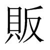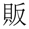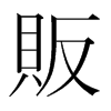 《唐韻》《集韻》《韻會》𠀤方願切,音畈。《說文》買賤賣貴者。《周禮·地官·司市》夕市,夕時而市,販夫販婦爲主。《註》販夫販婦,朝資夕賣。《禮·曲禮》雖負販者,必有尊也。《史記·呂不韋傳》往來販賤賣貴。《集韻》或作𧶶。