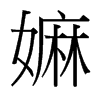 1. 古同“嬷”(a.母亲的俗称。b.老年妇女的通称)。