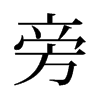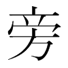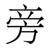 〔古文〕𣃟𣃙㝑《廣韻》步光切《集韻》《韻會》蒲光切,𠀤音螃。㫄隷作旁。《博雅》旁,大也。廣也。《釋名》在邊曰旁。《玉篇》猶側也。非一方也。《易•乾卦》旁通情也。《書•太甲》旁求俊彥。《爾雅•釋宮》二達謂之岐旁。《註》岐旁,岐道旁出。