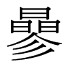 商星也。从晶㐱聲。𠻝,參或省。所今切〖注〗臣鉉等曰:㐱非聲,未詳。〖注〗𠫰、朁,古文參。