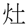 灶【巳集中】【火部】 康熙筆画:7画,部外筆画:3画