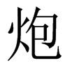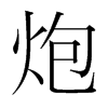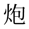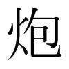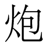 炮【巳集中】【火部】 康熙筆画:9画,部外筆画:5画
