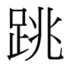 《廣韻》徒聊切《集韻》《韻會》《正韻》田聊切,𠀤音迢。《說文》蹶也。一曰躍也。《博雅》上也。《釋名》條也,如草木枝條務上行也。《莊子·逍遙遊》東西跳梁。《史記·司馬相如傳》馳波跳沫。《王褒·洞簫賦》跳然復出。《類篇》或作𨃜。