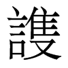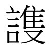 (護)救視也。尚書中𠋫握河紀。堯受河圖。伯禹進迎。舜契陪位。稷辨護。注云。辨護者、供時用相禮儀。周禮注亦云辨護。蕭何世家。數以吏事護高祖。从言。蒦聲。胡故切。五部。